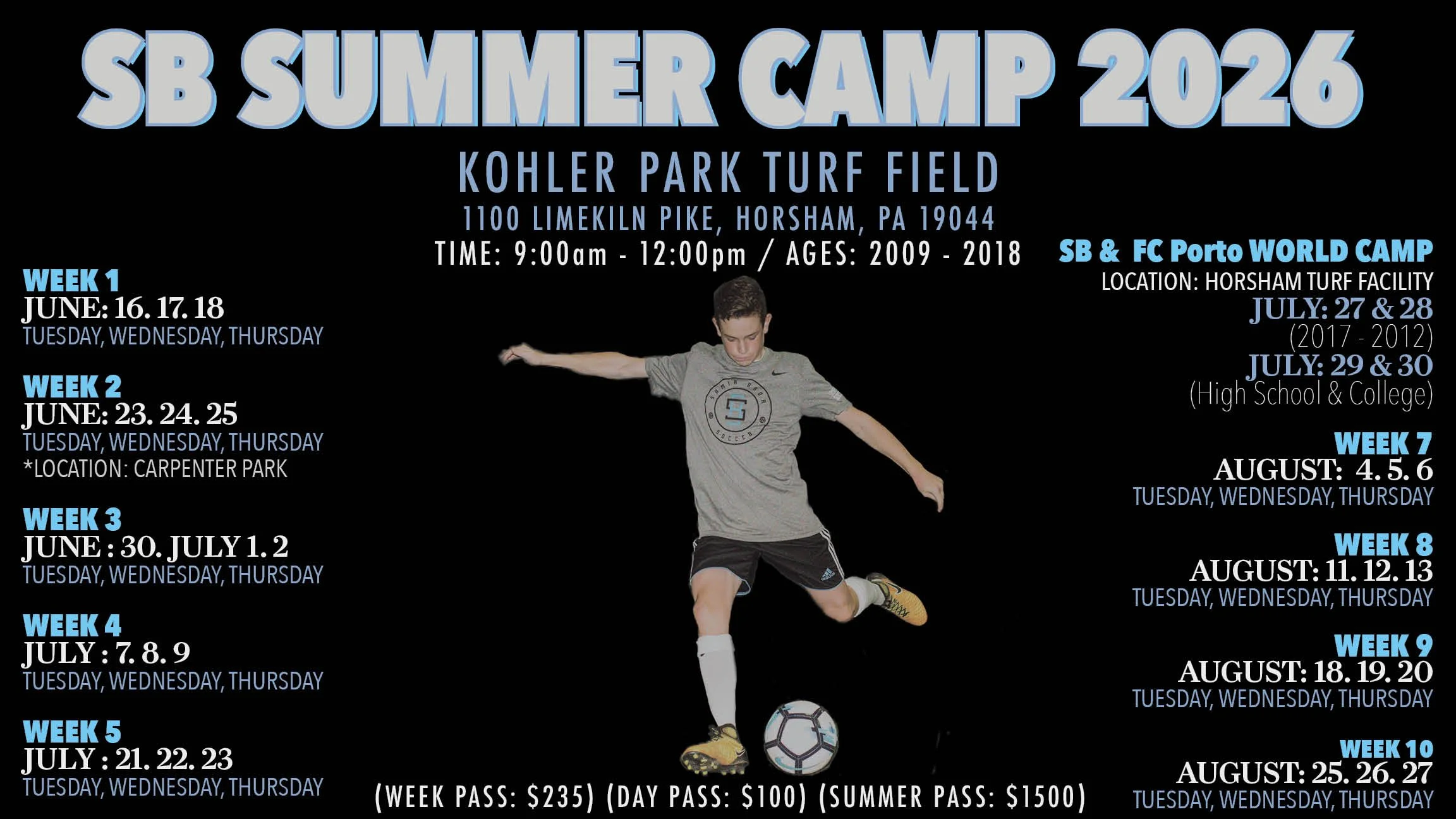 SB Soccer is excited for the 10th year of SB Summer Camps in 2026. SB Soccer offers a one of kind experience for youth players at SB Summer Camps, players will learn superior skills, unmatched training intensity and a competitive mentality each week.